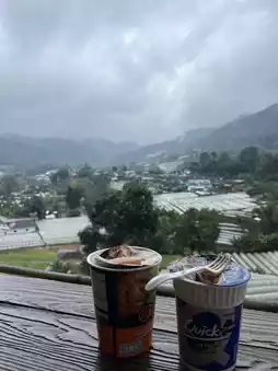 Int Lai Khao Cafe is decorated in a simple and warm style, blending with the natural surroundings of mountains and forests. This makes it a perfect spot to chill, enjoy the view, or take memorable photos while experiencing the refreshing cool air throughout the year at Doi Inthanon.