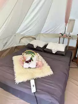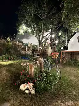 ⛺️We booked a tent for 1,590 baht per night. The accommodation is great, the bed is soft and comfortable, there is air conditioning and a refrigerator, plus there is a bathtub. There is also a sitting area in front of the accommodation. In the evening, the weather starts to get cold, it feels great.