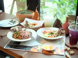 As the name of the shop, Phing Phukao, has a cafe with food and drinks.
