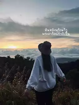 ⛰ How to take photos of Doi Inthanon viewpoint during sunrise to get good photos even if it's against the light? 🫶🏻 Coming to Chiang Mai, how can you miss watching the sunrise? Today, Ploy will take you to watch the sunrise, but you can't miss taking photos even though it's against the light. Of course, if you take a photo showing your face, your face may be dark. So focus on posing instead. 📸 Pose with your back to the camera and enjoy the fresh atmosphere. 🚗 Take photos in the middle of the road when there are no people or cars. ⚠️ Be careful of the cars! 🌫 Don't forget to take photos of the view because it's very beautiful. 🥰
