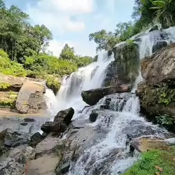 "Mae Klang Waterfall" is a large waterfall that I can say is one of the most beautiful places in Doi Inthanon National Park, Ban Luang Subdistrict. It is not difficult to get there. Take the same route as we will go to Doi Inthanon. There will be signs along the way. For those who are looking for a place to sit and relax and enjoy the natural atmosphere, I recommend this place.