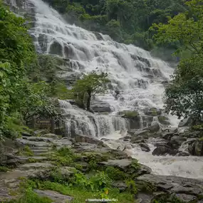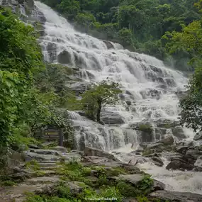 Mae Ya Waterfall is considered one of the most beautiful waterfalls in Thailand. Located within Doi Inthanon National Park in Chiang Mai Province, it stands out with its cascading waters over 30 wide rocky cliffs, reaching a total height of approximately 260 meters. This creates a massive, white curtain of water that contrasts beautifully with the lush green forest.