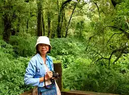 The Ang Ka Nature Trail is constantly covered in clouds, creating a humid and misty atmosphere. The trees in this hilltop rainforest are covered in moss and ferns, creating a primeval forest-like atmosphere.