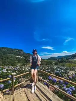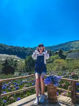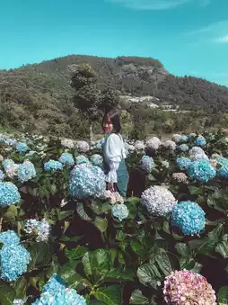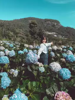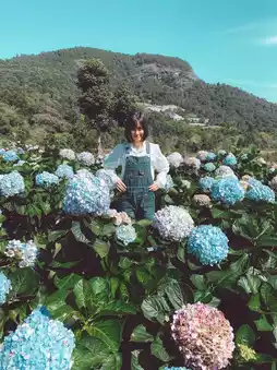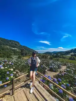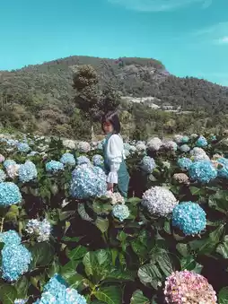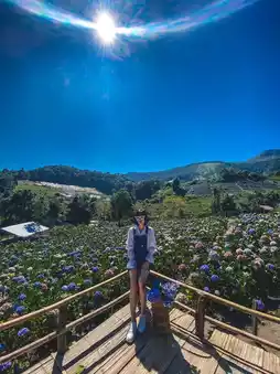 The way up to the field is quite difficult. You have to take a local car up the mountain. The road is rough until your butt hurts. Your whole body is sore. But the view along the way is beautiful and pleasant to look at. The view of the hydrangea field is worth the climb. It's so beautiful that you can shout it out. There are a lot of flowers in bloom. There are many colors. It's fun to take hundreds of photos. Let me tell you. The weather is also very good. We went in the morning. The weather was very cool. It was awesome. If you go in the morning, there is fog.