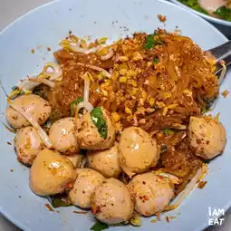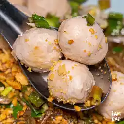 🥢Dry small noodles with meatballs 50.- Soft and chewy small noodles, lots of pork meatballs, filling the bowl.