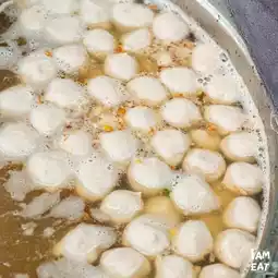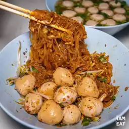 🔥Original recipe for 50-year-old clear soup noodles, Auntie Cho, clear soup pork meatball noodles, Chom Thong area, homemade meatballs, overflowing into the bowl. It's a small cart with a glass cabinet full of meatballs. Customers come continuously.