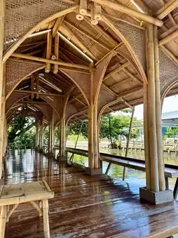 A cafe in a 100-year-old lychee orchard on the banks of the Bang Khun Thian Canal.