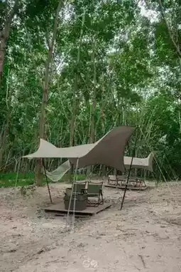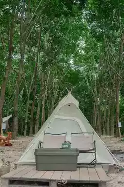 Escape the chaos and relax in the rubber plantation. Today, we will take you on a tour of a camping-style cafe. You don't have to tire yourself out carrying a tent to set up.