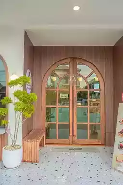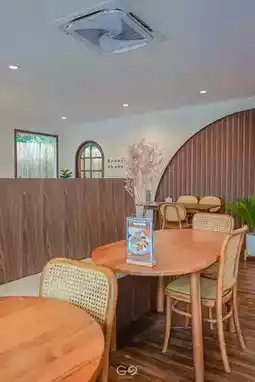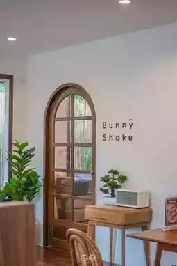 Bunny Shake Cafe Bang Phra branch caters to those with a sweet tooth. Let me tell you, this shop is very cute and has a Japanese feel. The atmosphere inside the shop is decorated with wooden furniture in brown tones contrasting with the white walls. It's really great, everyone.