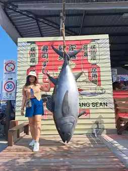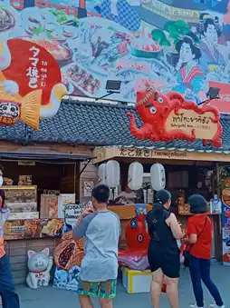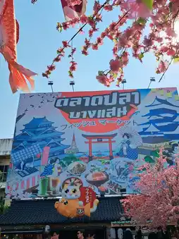 Bangsaen Fish Market, Khao Lam Road, Chonburi Province, a new and very cool landmark fish market, comes in a Japanese theme, bringing fresh seafood to you to eat to your heart's content, including shrimp, shellfish, crabs, fish, sashimi, sea urchins. Forget the smelly fish market because this place is clean and very inviting. There are also places to sit and eat.