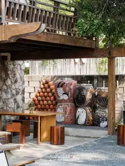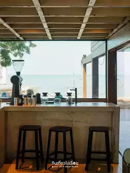 Where is good to go during this heat? Let's go to 💦WAY Coffee House in Bangsaen zone. It's located by the sea with good mood and vibes. From the entrance, the two-story wooden house is used as a shop (the second floor is a Japanese food zone, Omakase). There is a glass room zone for ordering food, a coffee drip bar, and a relaxing view of the sea outside. The outside area is very breezy, like a wind tunnel. Around the shop, there are seats by the beach where you can take pictures on the sandy beach 🌴🌴.
