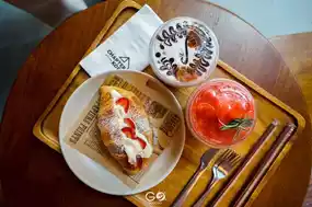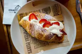 Thinking of taking a break and missing the café? Today, let's take a stroll to Chapter Koff, a café in the Bangsaen area that caters to those who love the dark and cool style of photography. With many angles to take pictures, you won't be disappointed. The shop is decorated with various types of cactus, and there are many zones to choose from to take pictures. The seating area is perfect for sipping coffee and relaxing. Inside the shop, there are various drinks and cakes to choose from. The desserts are so sweet that you'll want to sing. But what I like most about the shop is the delicious food from the kitchen.