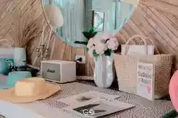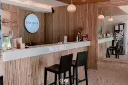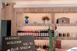 Bluespace Cafe 🏖️🌊🍵 is not located in Pattaya, but it's a cafe on the beachfront. The highlight of the cafe is the sand that is brought inside, creating a beach vibe. You can walk on the sand while enjoying your coffee ☕, sit quietly and listen to the sound of the waves 🌊. The atmosphere is very pleasant, and the decoration inside the cafe is lovely. There are many photo spots 📷, and you can order drinks and desserts 🍰 from the menu. Looking out, you can see the sea 🌊, and there are also benches and seats outside to enjoy your food. The cafe is open from 10:00 am to 6:00 pm, except on Tuesdays 📅. There is a parking lot available, and you can access the cafe through the Golden Dragon Beach Hotel 🏨.