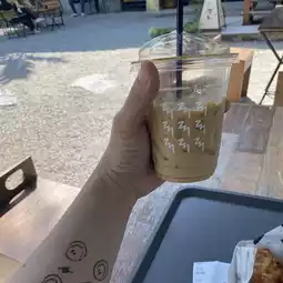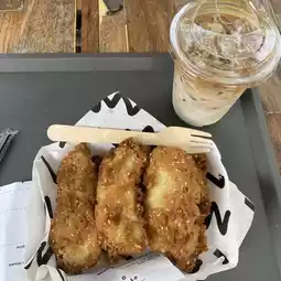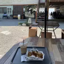 This shop has a two-story wooden house by the sea with beautiful trees in front. The first floor is an air-conditioned room and a place to order coffee/choose desserts. On the day we went, there was a special menu of fried bananas. We didn't hesitate to order some to try. They were very delicious, crispy on the outside and soft on the inside. There was no rancid smell. It went great with iced latte.