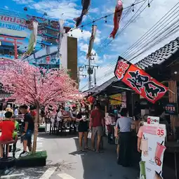 🎏 For those looking for a place to visit near Bangkok, don't miss this place. Bangsaen Fish Market is another place to visit near Bangkok that gives you a feeling like you're traveling in Japan. Enjoy the atmosphere, a variety of food, and many photo spots. 🥰👍🏻 The fish market here has to be another one of my favorite places to visit. It's like a small Japan. Because they have arranged the atmosphere to be really awesome, whether it's the streets, the lamps, the cool phone booths, and the restaurant menus that we can guess from a variety of choices. 😊😊 Let's start with the food menu here. Personally, Air thinks that there are a variety of sweet and savory menus to choose from. Some are delicious, some are not so delicious, mixed together. But in terms of atmosphere, I give it a score of over 100. 😄😄 The vendors in each shop I must say that they are super friendly, patient, and smile to customers in almost every shop. I am very impressed. 🫶🏻💞