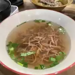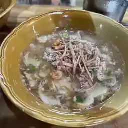 The pork noodles have a delicious highlight of the dried shrimp and dried squid soup. The taste is naturally sweet and fragrant, not fishy. Everything is finely chopped and has minced pork slices. Seasoned with peanuts, fresh lime juice. If you order noodles, they are chewy and soft. The dumplings at the shop are also delicious. They always run out before you get there. If you come early, you will get to eat them. The pork dumplings are thick and soft.