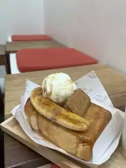 Crispy bread on the outside, soft on the inside. Topped with fragrant caramel