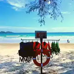Enjoy the cool breeze. They also offer mats, chairs, and tables for rent. If you're looking for a place to swim in the beautiful, crystal clear water and pristine white sand, don't miss Nam Sai Beach.