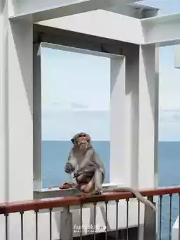 #VisitChonburi This is my first time visiting Khao Sam Muk, Chonburi Province. There are many places where we can stop and take pictures. While driving through, there are 3 main zones that we can go down to: the area next to the cafe, the viewpoint with the name Khao Sam Muk, and the lower area next to the Sam Muk Shrine. All of these have beautiful blue sea views. And what you can't miss is the monkeys. If you're holding snacks, be careful because they'll rush at you and snatch them away right away.