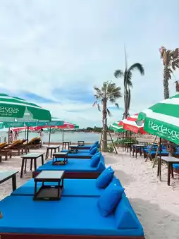 🌴 badasga beach club 🌴 A new cafe in bright orange, located on Bangsaen Beach. Let me tell you that this shop is both a cafe and a restaurant. It has everything you need in one shop. There are seats both inside and outside. The photo spots are so beautiful that you can get every corner. The view is great and it's right on the beach. If you're going to Bangsaen, you have to include this shop in your plan. Don't miss it!