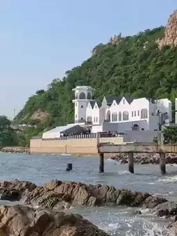 A cafe that transforms an abandoned building by the sea into a super cool cafe next to Khao Sam Muk, a super cool location