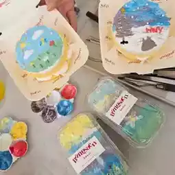 🖼🎨 There are cake painting activities, vanilla and banoffee cakes, and various drawings. I recommend it to anyone looking for something to do on a holiday. There are also drinks for sale. 10/10 (I recommend you to contact the page to make a reservation in advance.)
