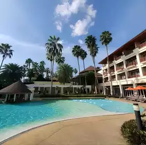 An old hotel on Bangsaen Beach for a long time, but still classic, luxurious and classy. The location is good in front of Bangsaen Beach, just a few steps away. It is easy to find food and convenient near various tourist attractions. The hotel has a spacious area. The atmosphere around is shady, with large and small trees. It is a place to sit and relax, and it is quiet and private. It is suitable for family vacations. The balcony offers a beautiful view of the sea. The sunlight is so cool. If I have a chance, I will visit again. There is a large dining room with a delicious breakfast buffet. There are many noodle menus, egg menus and hot and fresh pan-fried eggs. All staffs are very good. There is a clean swimming pool for children and adults. There is a fitness center, spa, and sauna. There is a lot of parking space, convenient. The rooms and furniture are still complete and clean. The bed, blankets, and pillows are very neat. Whenever you come to Bangsaen, try to relax your body and mind at The Tide Resort Bangsaen.