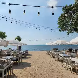 The hotel is right by the sea, you can swim. There is a seafood club restaurant in Bangsaen right next door. The food is delicious, the view is beautiful, the price is the same as the air-conditioned restaurant with a beautiful view. It is not very cheap, but it is not too expensive either.