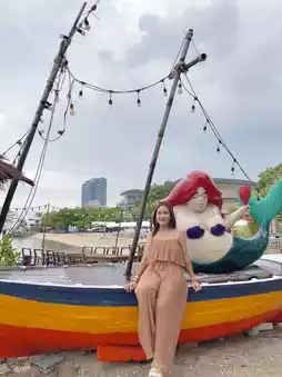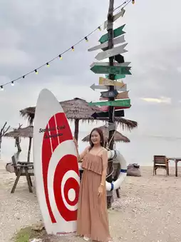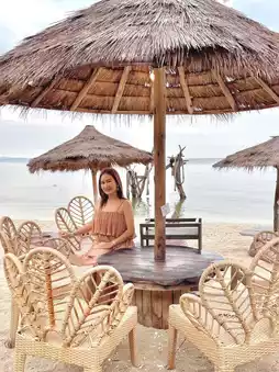 The highlight of this restaurant is that there are many beautiful photo spots, suitable for girls who love taking pictures. There are both indoor and outdoor dining seats. There are bean bag seats for you to sit and eat your meal by the sea.