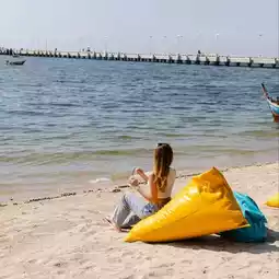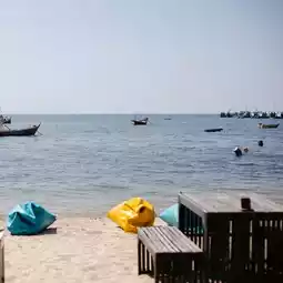 ☕️ 𝑴𝒐𝒓𝒏𝒊𝒏𝒈 𝑴𝒐𝒐𝒏 𝒐𝒏 𝒕𝒉𝒆 𝒃𝒆𝒂𝒄𝒉 A small coffee shop in the slow bar style, hidden in the Rim Had Kitchen restaurant. There are menus to choose from, including tea, coffee, and soda, which come with a panoramic sea view and the lifestyle of the seafarers. The advantage is that it is quiet, not crowded, and the cool breeze is comfortable, perfect for coming to let loose.