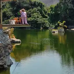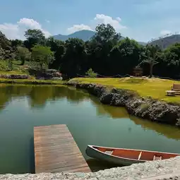 It's a cafe that's really well done. When you walk in, the first image you see will definitely be wow. It's like being in the middle of a valley with a lake.