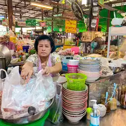 Auntie Noi's shop is located in Nong Mon Market, Chonburi Province, on the way back to Bangkok (park your car in the shrine).