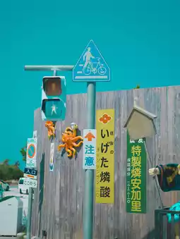 There are many photo spots, including a water cooler, a mailbox, chairs, a zebra crossing in the middle of the road, and traffic lights.