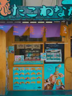 Divided into several zones in the same area, including a cafe, a takoyaki shop, a fish-shaped takoyaki cake, a Japanese-style garden
