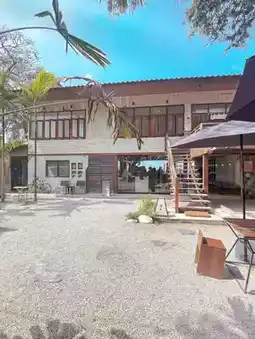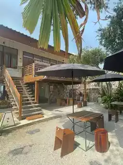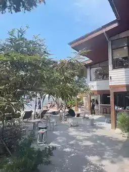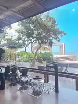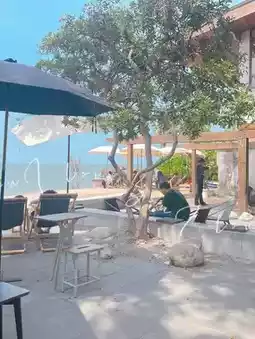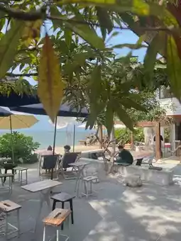 If you want to relax, you must come here. You can sit and enjoy it, both inside the shop, under the house, or outside the shop, listening to the sound of the waves in the backyard. Relax on a beach chair or in the garden under the big tree in front.