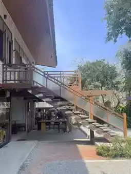 Way Coffee House, a vacation home-style cafe on Bangsaen Beach. It is a 2-storey wooden house with a very nice vibe. There are many cute photo spots. The ground floor and outside are cafes. The upper floor is a Japanese restaurant, Sushi Kaijou, Omakase style.