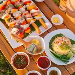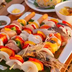 In the evening, have a barbecue. Camping style resort by the sea #Bangsaen 🐙🌊