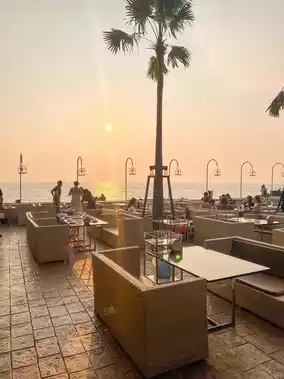 We recommend coming around 5 pm when the sun is about to set. The sunset view is very beautiful. Even more so when you can sip a cold cocktail and enjoy the sea view. It's so chill. 🌤️🍹