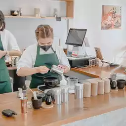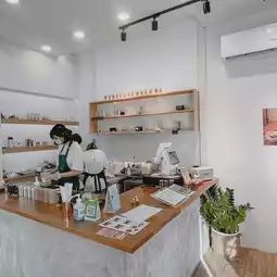 🏠 The shop is small and cute, with a white minimalist style and very cute decorations. Although the shop is small, there are many beautiful photo spots, such as the counter corner, the small table corner with white curtains, or the cute shop front corner.