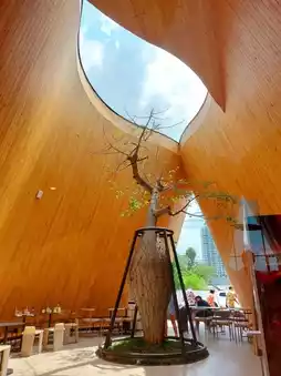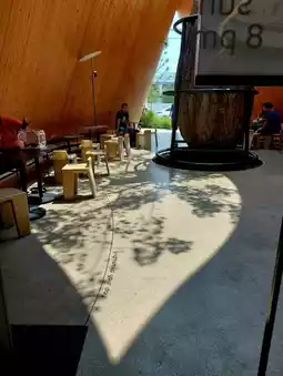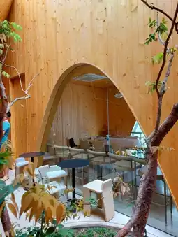 🍹🍹The interior is decorated with wood. It is beautifully designed. There are skylights coming through. However, the cafe is quite small. The space is used very well. The seats are quite close together. During the holidays when there are a lot of people, it can be a bit chaotic.