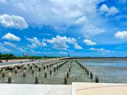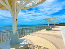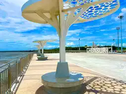 The sunset viewpoint of Mueang Chonburi District is located on the road that is familiarly called Saphan Mai Road or the full name is Saphan Chonlamarkwitthi 84 Phansa Road. It is a bridge that stretches along the coast of the Gulf of Thailand to reduce traffic congestion in the city of Chonburi. It is about 7 kilometers long, so it has become an important tourist attraction of Chonburi Province. Currently, the government has built more sunset viewing platforms to provide tourists with more convenient photo spots and places to rest. You can sit in the white pavilion on the balcony to watch the sea up close. 🌊 The sunset viewing platform is located at the Sailboat Roundabout and the Twin Shark Roundabout. 🌊 The signature is the English letters CHONBURI. You can walk under it to take pictures. 🌊 It is recommended to come in the evening because the weather is not hot and you can see the sunset clearly. 🌊 Prepare a mat or chair to sit and relax because there are limited seats in the construction area. 🌊 In the evening, there are vendors riding trailers and pushing carts to sell food and drinks all the time. 🌊 No buses pass through. Private cars can be parked along the roadside along the bridge.