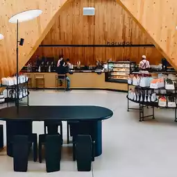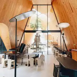 🥢Harudot Chonburi by NANA Coffee Roasters is a popular cafe that photography enthusiasts shouldn't miss. Designed in a modern Japanese style, it stands out and has its own identity. The shop is a black gable building. The interior is decorated in warm brown tones. There are large trees as the highlight and beautiful natural light, making beautiful photos from every angle. There is also an outdoor area where you can sit and relax, enjoy the breeze and view.