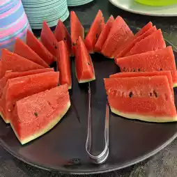 Jellyfish, snacks, sausage, fried rice, spicy salad, dessert, ice cream, watermelon, mango with chili and salt, everything is here