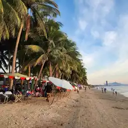 🏖 Bangsaen Beach is a beach in Chonburi Province. It is another top choice for many people to relax during their holidays. You can either go there in the morning or stay overnight, whichever is more convenient. It is located near Bangkok, approximately 100 kilometers away, and takes only 1 hour to travel there.