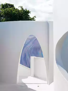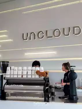 #Places to visit near Bangkok 🌙💫UNCLOUD Coffee is a cafe that is very popular right now. It can be said that anyone who visits Bangsaen must definitely stop by. The location is good on the side of the road. It is a 100% pass-through, especially on the way back to Bangkok. 🪐The concept of the shop is an area under the northern lights. It is striking with the white outer wall. The playfulness is the various curves that connect well to the sky. There is also a zone that looks like a large, sparkling purple cliff. There is a staircase leading up to the 2nd floor for taking cool photos.