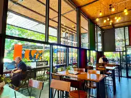 A shady cafe in the Amata City area of Chonburi with a cool name: Addict. The outside looks shady, but inside the cafe is decorated with many cartoon models, making you feel like you're in a dream world. In addition to drinks, there's also a variety of food. The shop has both an air-conditioned area and an outdoor area surrounded by green trees. There's parking both outside and inside the shop. This shop is perfect for people who love or collect cartoon models.