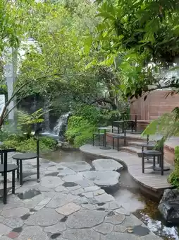 🌈A beautiful cafe in Chonburi Province. This cafe is designed with outstanding architecture. Upon entering the shop, you will find a 700-year-old olive tree. In addition, there are many beautiful corners to check in and take beautiful photos. It is designed in a geometric triangle shape. There are both indoor and outdoor areas with beautiful gardens. Inside, there is a baobab tree in the shape of a giant water tank from Africa. It is very uniquely beautiful. It is another cafe worth visiting. It will definitely appeal to cafe lovers.