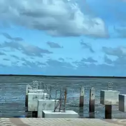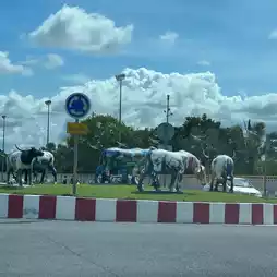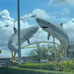 The Chaloem Mark Vithi Bridge is a 17km coastal bridge. It is a beautiful viewpoint, a unique feature of Chonburi people. The prominent architecture is the painted buffalo roundabout, the sailboat roundabout, and the double shark roundabout.