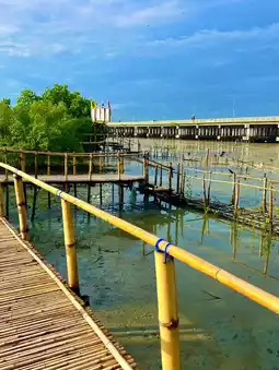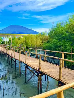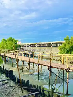Bang Sai is an old fishing community in Mueang Chonburi District. It is located along the Gulf of Thailand along the entire sub-district. The way of life of the Bang Sai villagers still goes out to catch crabs and fish. But when the Chonlamarkwithi Bridge cuts through the Bang Sai coast, Bang Sai has become another tourist attraction in Chonburi. It is a great activity that you can do everything. Start by asking for blessings from Ganesha, walking under the dragon's belly, seeing the three-headed elephant, walking on the wooden bridge, and seeing the mangrove forest. There is also an activity area for exercising or relaxing. If you come on a Saturday evening, there will also be a Tha Ruea Phon floating market, which will have a lot of food for sale. Location: Bang Sai Sub-district Public Park, near Bang Sai Sub-district Municipality, Mueang Chonburi District, Chonburi Province #tripแจกโรงแรมฟรี