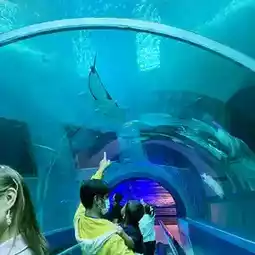 Today, we will take our friends to visit the aquarium and admire the beauty of marine life at the Institute of Marine Science, Burapha University, Chonburi Province. This place is perfect for families to bring their children to learn about the underwater world. There are many marine animals to see. During this school break, parents can take their children to visit. It's not far from Bangkok. Children will encounter the beauty and wonders of marine animals and much more. There are also beautiful lights to see and a diving show where fish are fed at 2:30 PM, with an additional show at 10:30 AM on public holidays.